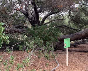 A few months after her passing, I began to visit a 300-year-old live oak in Mission Trails Regional Park, northeast of San Diego. The tree’s location is a popular spot for families with children, hikers, and anyone seeking respite from the heat and sun. The branches not only extend overhead but also find footing on the forest floor. The trunk is as thick as three people—if they make a circle and put their arms around each other. I think of forest nymphs dancing and holding hands, imagine them disappearing into grooves and hollows until the park empties of visitors and night creatures roam the trails.